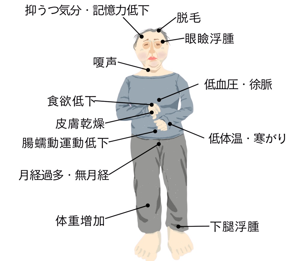 うつ病や更年期障害と間違われやすいですが、血液検査ですぐに分かります。